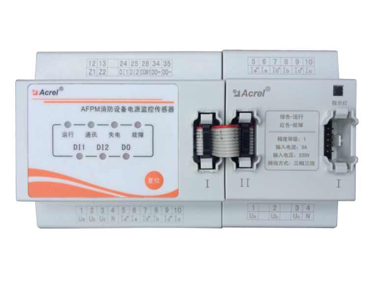 AFPM/D、AFPM/T 系列三相监控传感器(监控从模块)(以下简称从模块)能够***被监控设备交流电源的电压值、电流值,并通过通讯上传到主模块,主模块通过二总线上传到监控主机,模块可以判断被监控电源的电压、电流状态,如过压、欠压、错相、过流等状态,数据经监控主机分析处理后可以指示相应电源故障类型,并发出光报警信号。