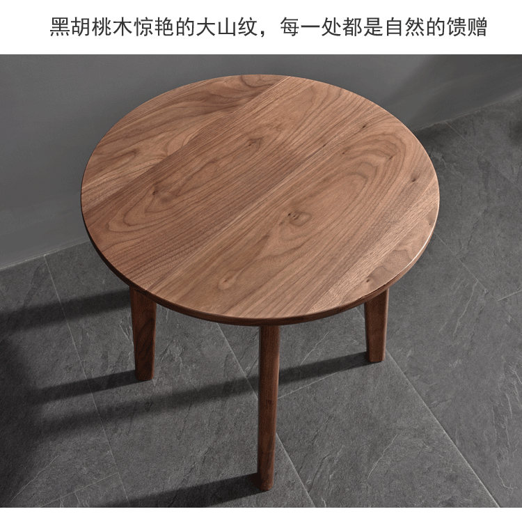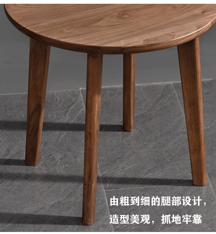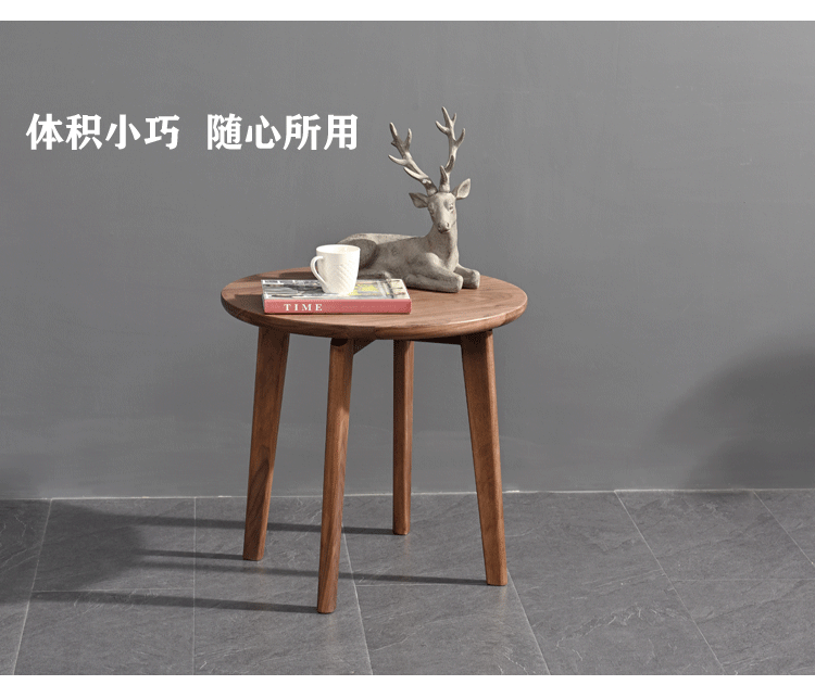 北欧实木圆形小茶几阳台休闲小桌子原木黑胡桃角几边几简约小圆桌